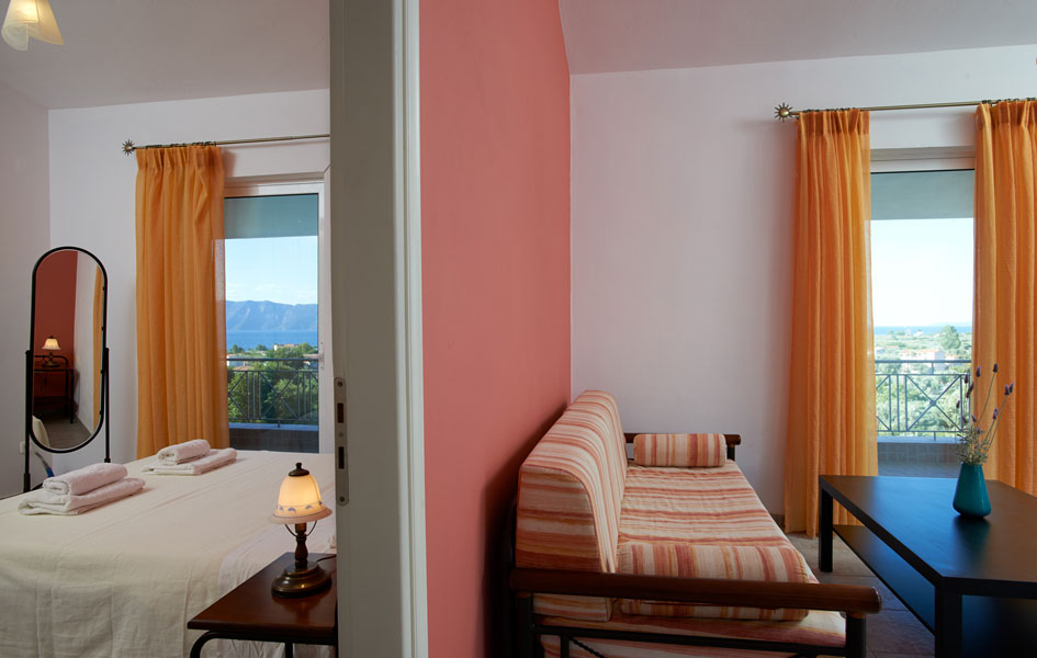 Τα διαμερίσματα διαθέτουν ένα υπνοδωμάτιο με διπλό κρεβάτι και επιπλέον έναν άνετο ενιαίο χώρο που περιλαμβάνει δύο μονά κρεβάτια.Διαθέτουν κουζίνα πλήρως εξοπλισμένη, μεγάλο μπαλκόνι με θέα προς τη θάλασσα. Όλα τα διαμερίσματα έχουν δική τους πρόσβαση και είναι ανεξάρτητα.